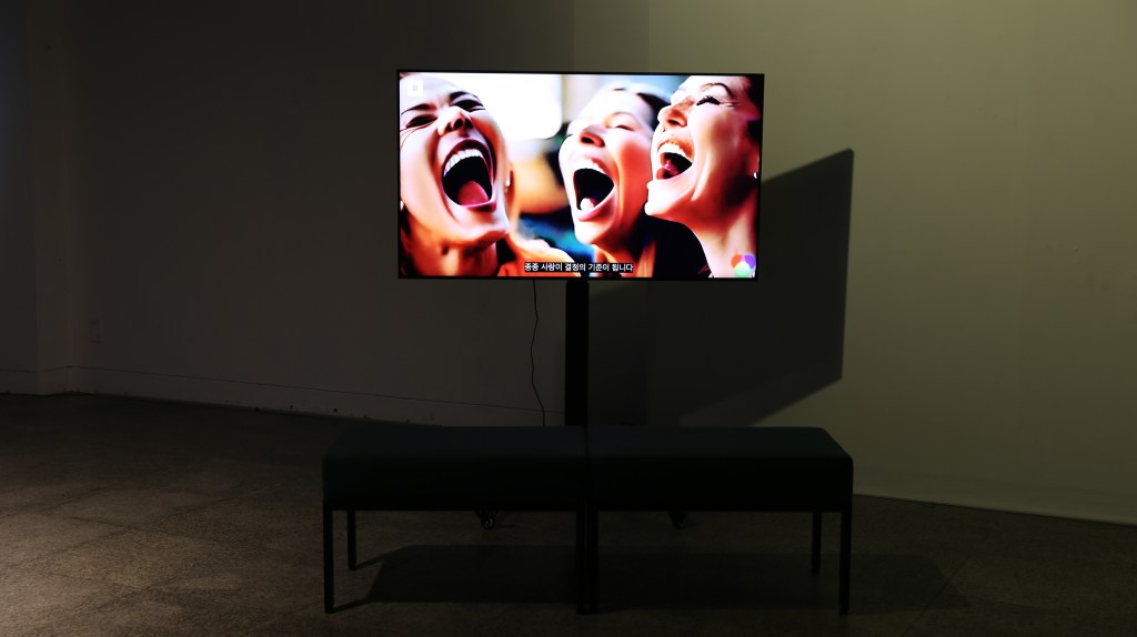 In 2022, Forkingroom addressed stories of the Synthetisphere that alternates between virtual and synthetic. Synthetics indicate images, sounds, or texts, the results that are not directly extracted from actual phenomena or events but generated from calculations. The Synthetisphere signifies the technological-social phenomena and mechanisms in which such results function efficiently and significantly to loosen the cognitive system of human beings. When the synthetic elements of the Synthetisphere exhibit incredible efficiency going beyond actual reality, it can be called ‘the canary in the Synthetisphere.’ We entered the Synthetisphere as a being like a canary in a mine of bits.