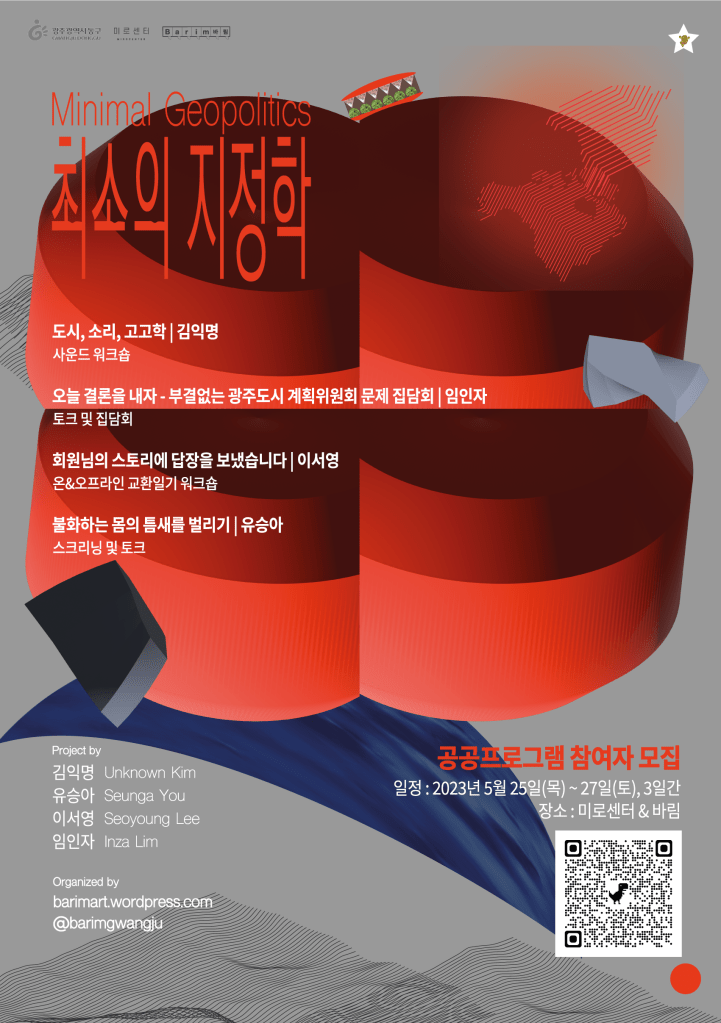 (3) Zero DistanceZero Distance: We propose experiments and practices that can subvert the physical distance between regions and the hierarchical publicness expressed tangibly through trials held online and offline in Gwangju and Seoul.More